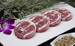 精選羔羊后腿,整形預凍后鋸切,切片厚度0.8-1.2cm,脂肪厚度0.5-1cm,肉質鮮香,形態美觀,適合煎烤。