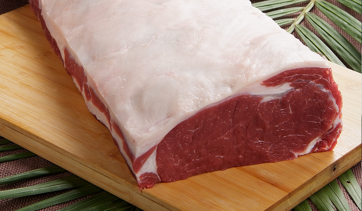 部位肉胴體占比3.6.%,脊椎骨(12_13肋)至腰椎骨末端兩側部位肉,表面覆蓋3-9mm脂肪,去除內外側,表面風干油膜、血污、軟骨組織、骨膜,肉的外延帶一圈呈白色的肉筋,口感韌度強、有嚼頭。