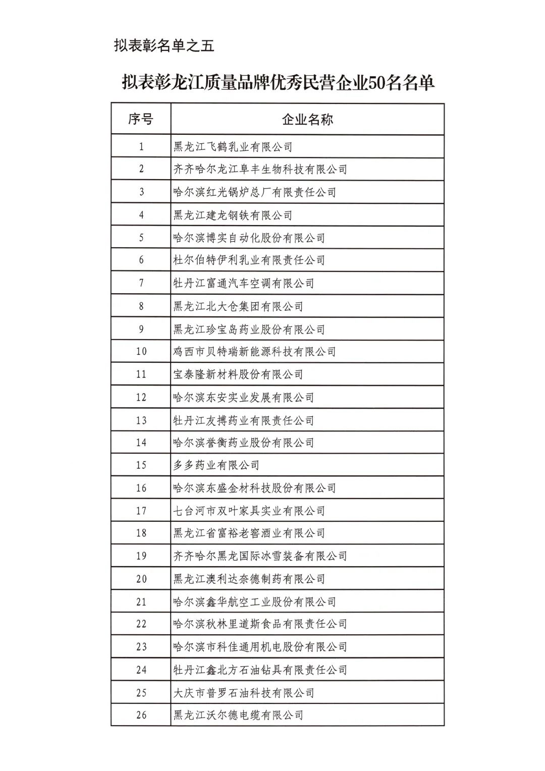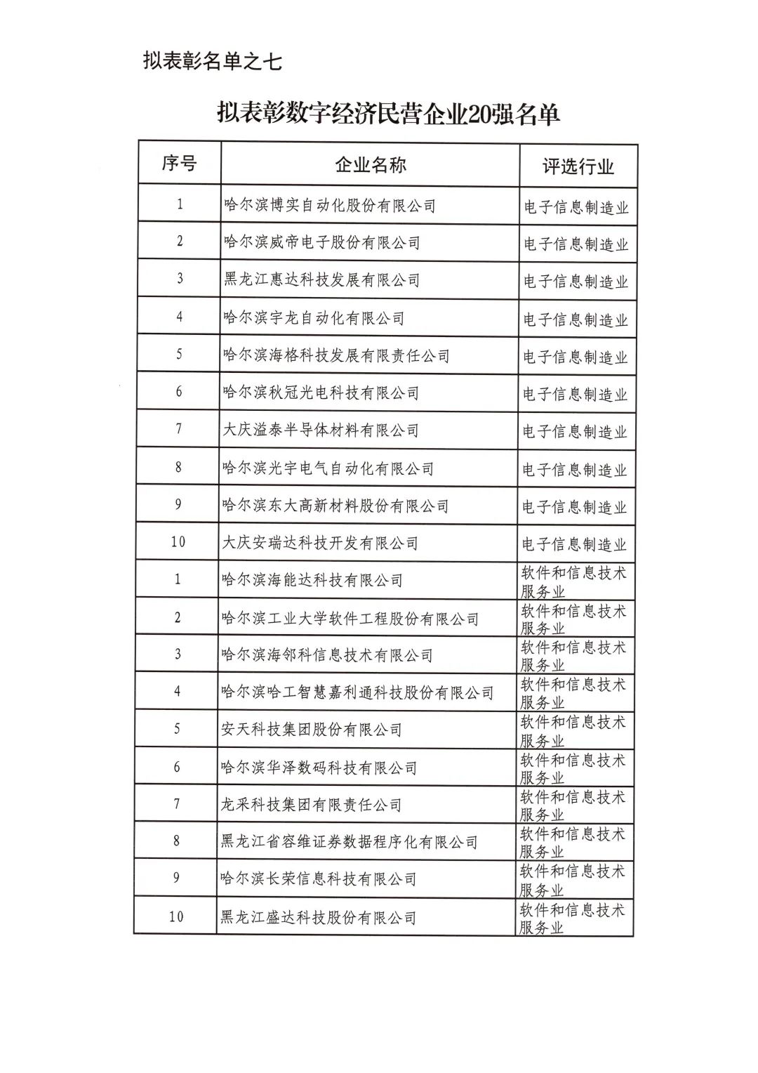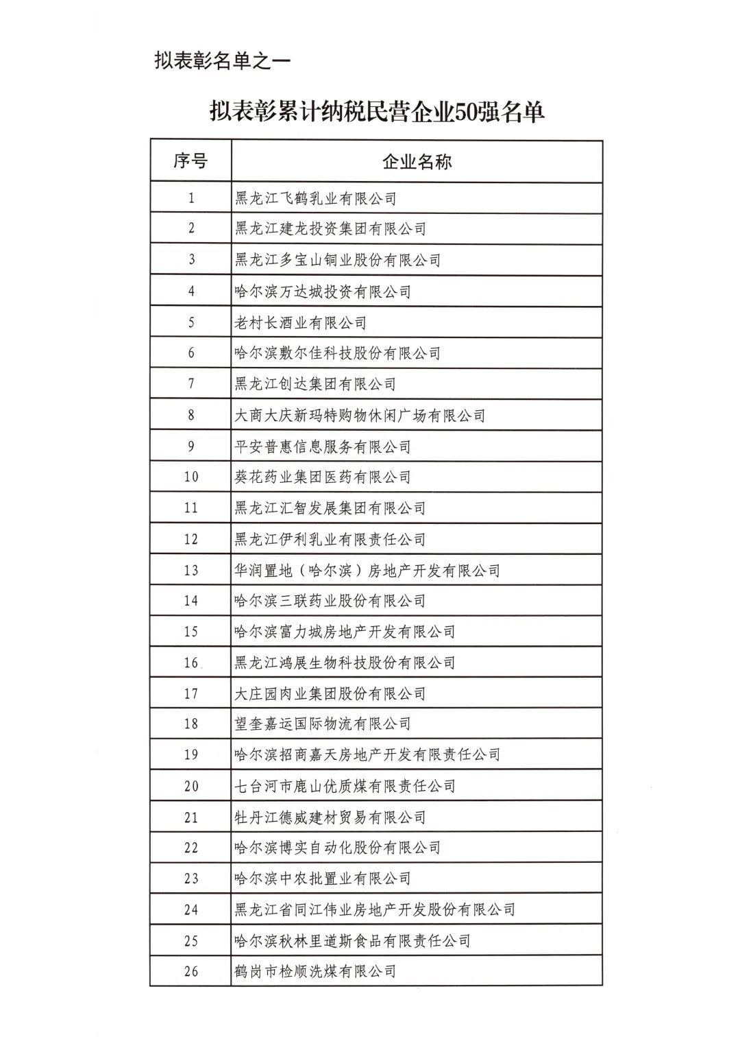按照省委省政府關(guān)于召開全省民營經(jīng)濟大會的決策部署要求,擬對全省優(yōu)秀民營企業(yè)進行表彰。經(jīng)企業(yè)自愿申報、市(地)把關(guān)推薦,評審小組排名,征求相關(guān)部門意見等程序,擬表彰全省累計納稅民營企業(yè)50戶、就業(yè)突出貢獻民營企業(yè)20戶、民營高新技術(shù)企業(yè)50戶、外向型經(jīng)濟貢獻民營企業(yè)30戶、龍江質(zhì)量品牌優(yōu)秀民營企業(yè)50戶、生物經(jīng)濟民營企業(yè)20戶和數(shù)字經(jīng)濟民營企業(yè)20戶。現(xiàn)將擬表彰名單予以公示。
