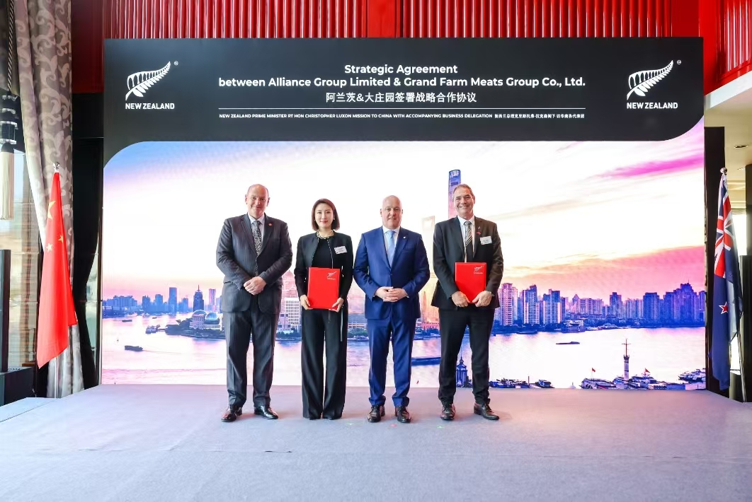 6月中旬,首次訪(fǎng)華的新西蘭總理克里斯托弗?拉克森在上海開(kāi)展了一系列商務(wù)活動(dòng)。大莊園集團(tuán)作為行業(yè)龍頭企業(yè),憑借其30年在國(guó)際貿(mào)易中做出的貢獻(xiàn),在拉克森總理的見(jiàn)證下與新西蘭阿蘭茨集團(tuán)簽訂了戰(zhàn)略升級(jí)協(xié)議,并得到新西蘭肉協(xié)官方授牌。